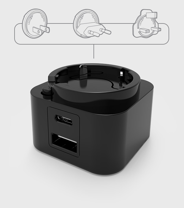 The GaN Charger boasts a slim and compact design for effortless storage. A set of interchangeable plug adapters is also included for wide compatibility and added convenience, saving you from the hassle of carrying multiple plugs while on the go.