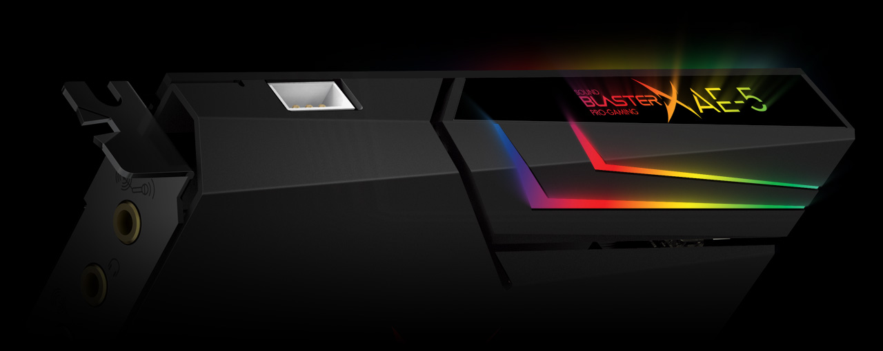 The Sound BlasterX AE-5 is a SABRE32 Ultra Class Hi-Resolution PCIe Gaming Sound Card and DAC with Xamp, a brand new discrete headphone amp utilizing bi-amplification technology. It delivers astonishingly pristine audio, and also shows off the Aurora Reactive Lighting System with 16.8 million customizable colors.