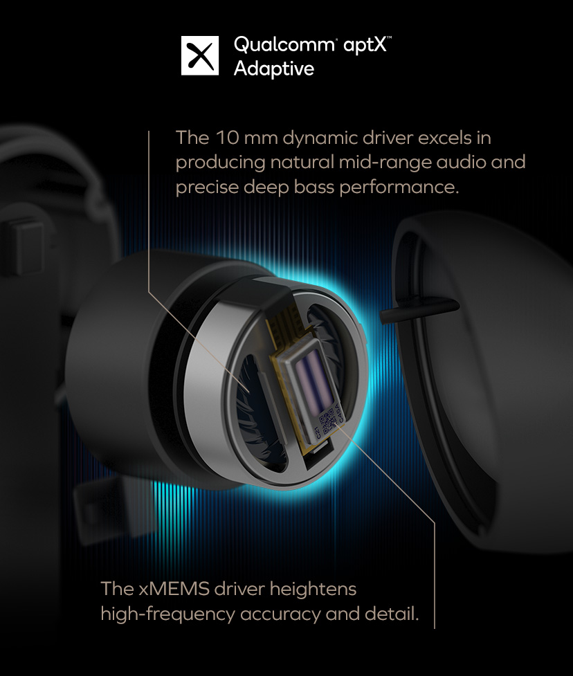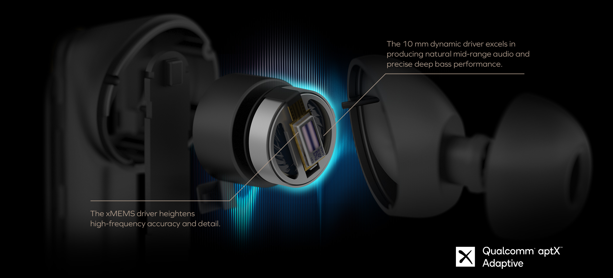 Powered by xMEMS technology and custom-tuned 10 mm dynamic drivers, enjoy a rich, detailed sound profile across all genres, from booming bass to crisp highs. Coupled with high-quality aptX Adaptive audio codecs, the Creative Aurvana Ace deliver great audio performance on the go.