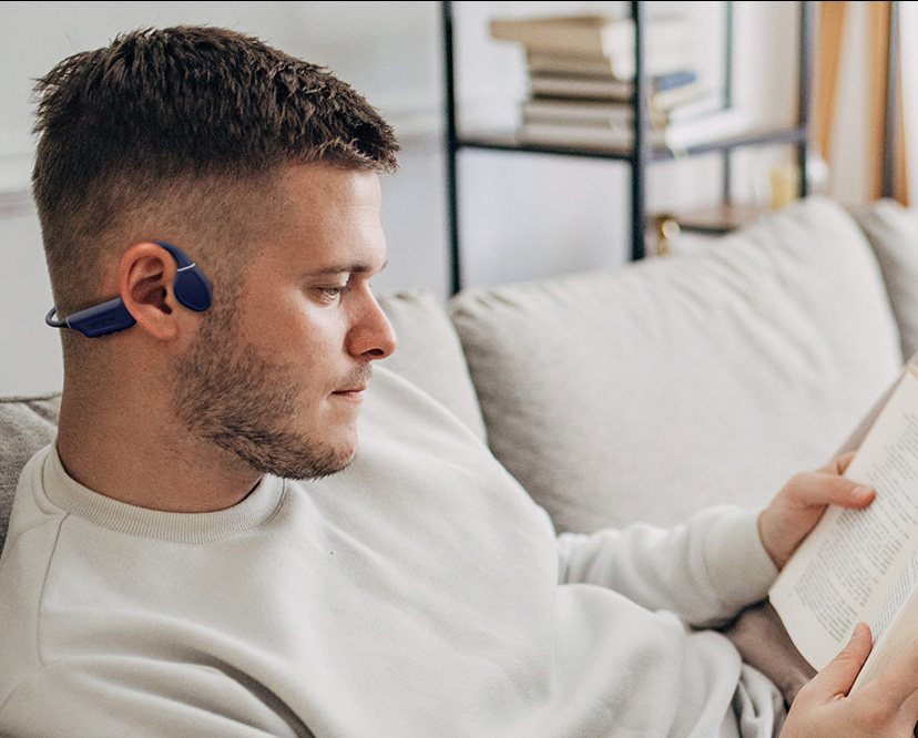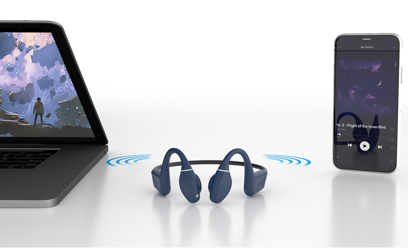 Bone conduction is the transmission of sound directly to your inner ears through the vibration of your cheekbones, allowing you to experience high-quality acoustics while keeping your ear open.