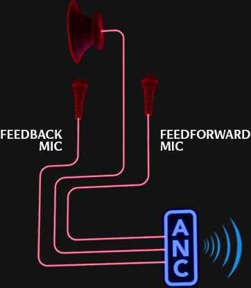 Four dedicated Hybrid Active Noise Cancellation (ANC) microphones‑feedforward and feedback‑to remove a broader spectrum of ambient noise of up to -35 dB.