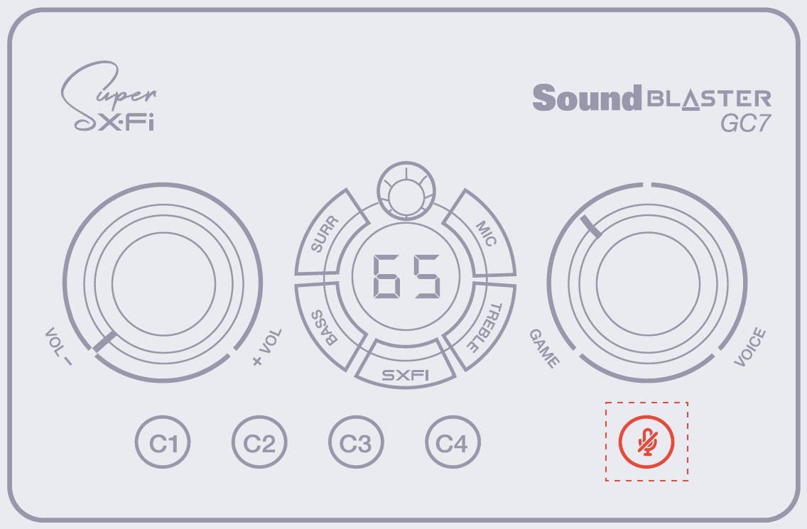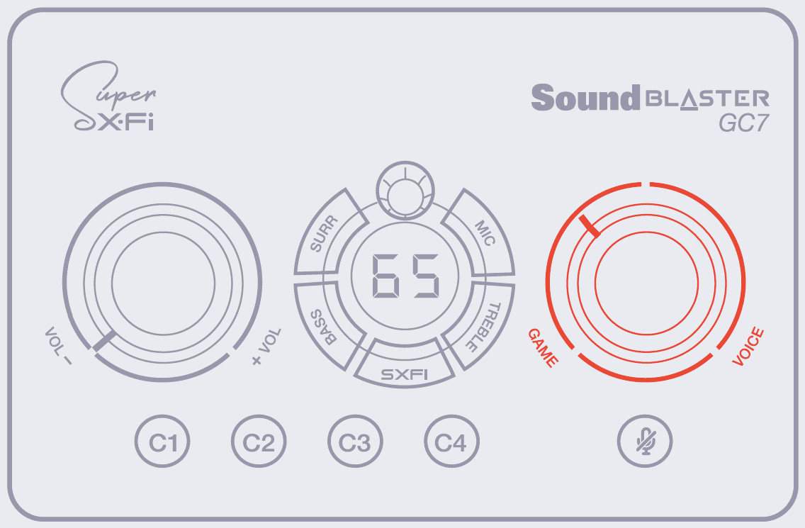 Sound Blaster GC7 allows you to control the right balance of your game and chat audio without having to leave your game screen or opening mixer settings with the GameVoice Mix feature.