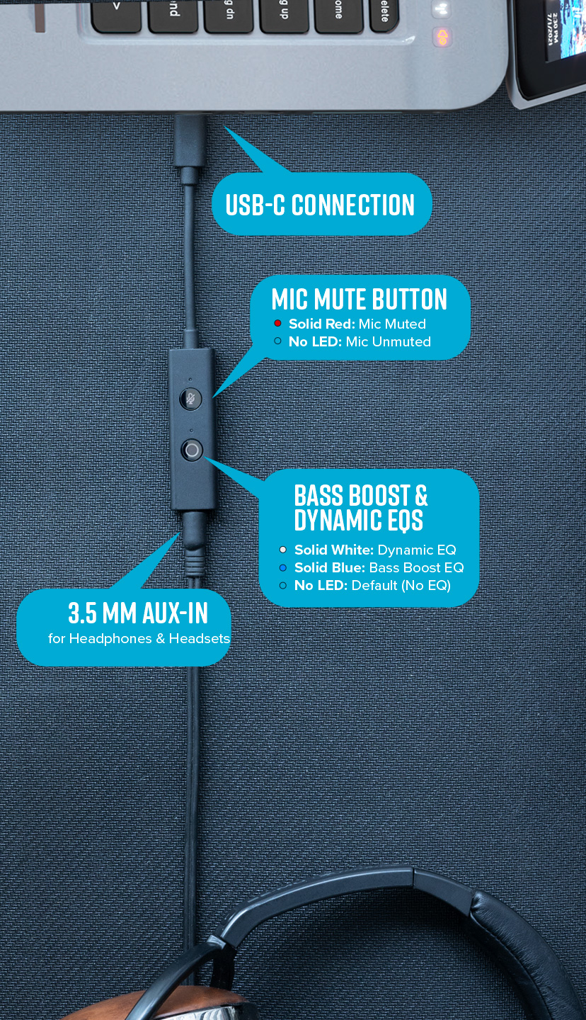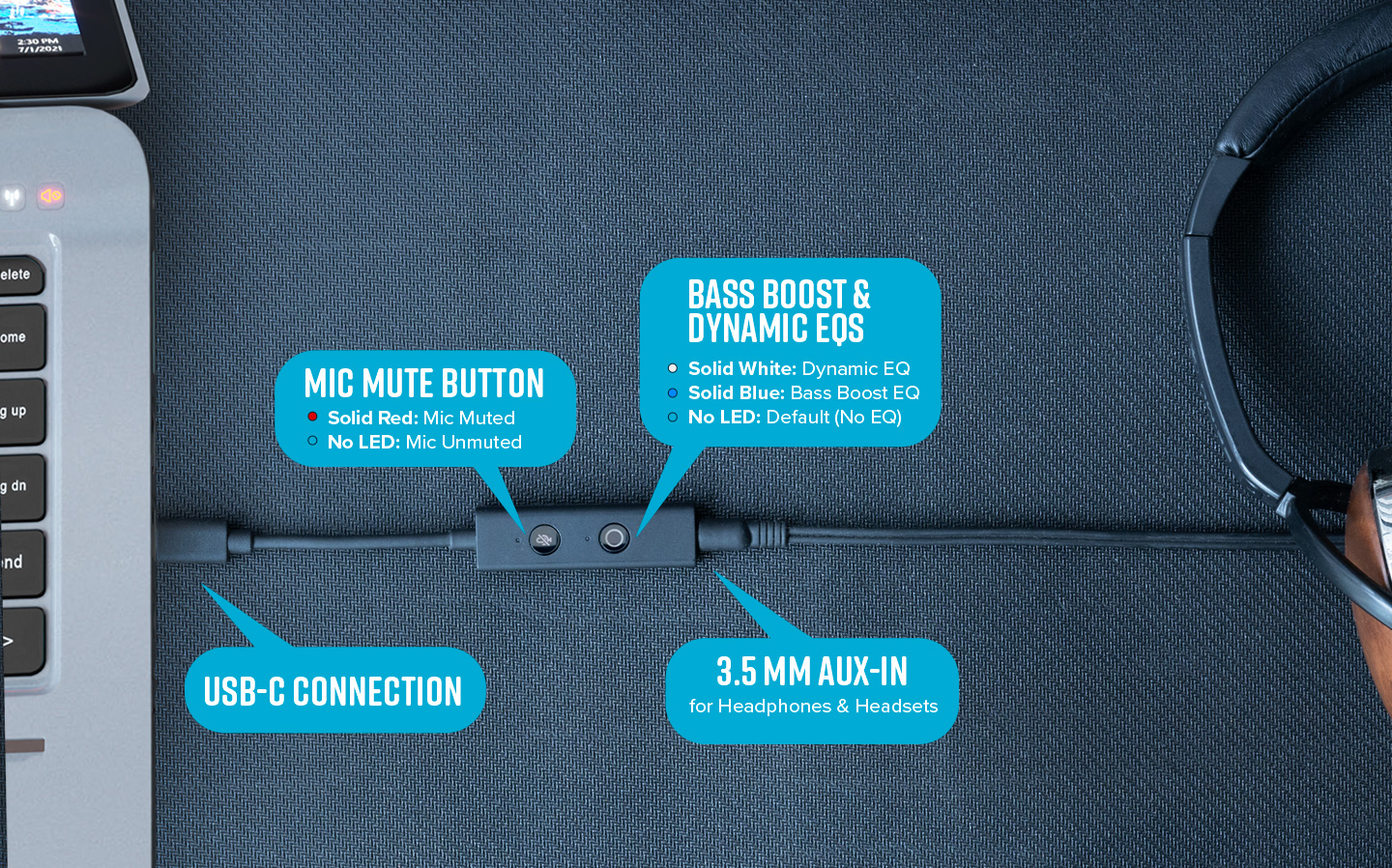 We've also made sure to uphold our ethos in delivering convenience and quality with a direct mic mute button, Bass Boost and Dynamic EQs, as well as an instant audio upgrade that surpasses the default audio on any of your devices.
