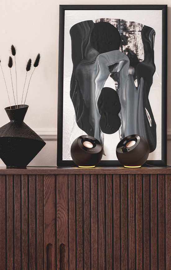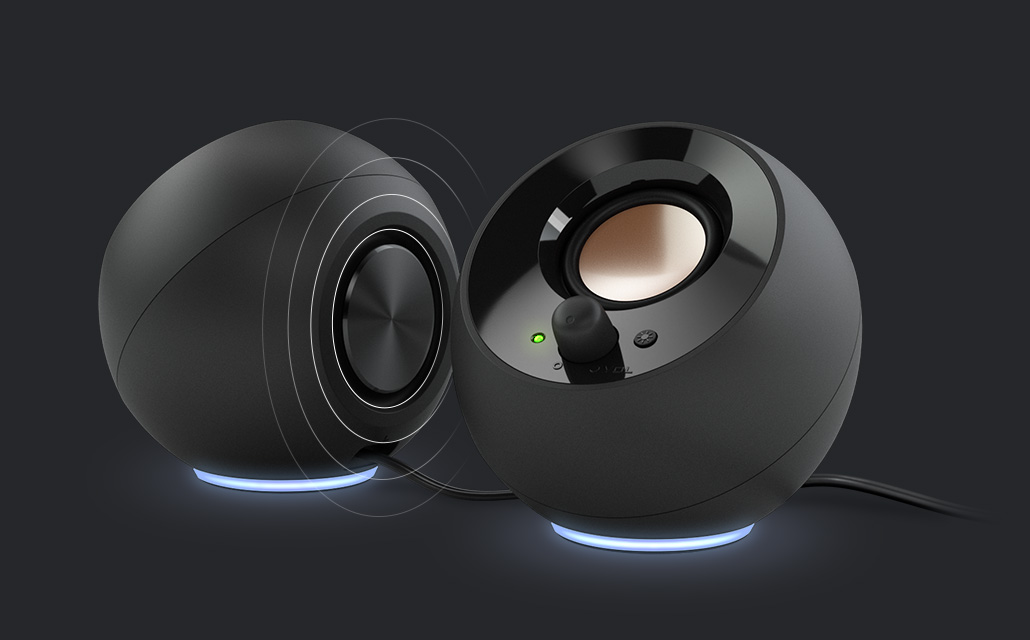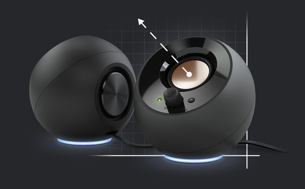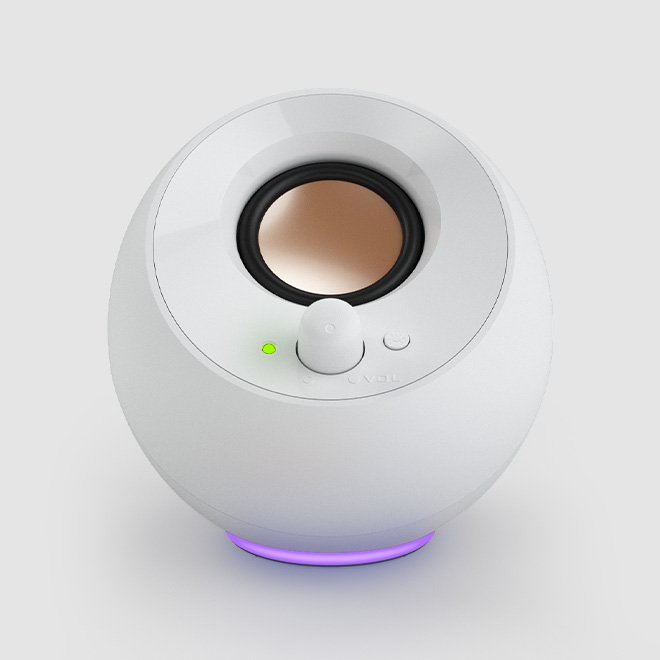 At just 116 mm / 4.6 tall, Creative Pebble SE is built to fit into any corner of your room or house, adding an aesthetic flair without taking up much space. Complete with a convenient volume knob for quick controls.