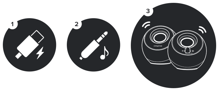 Simply connect the USB-C cable into an available USB port for power, then the AUX input cable to your audio device, and you're all set!
