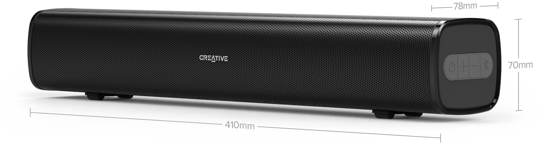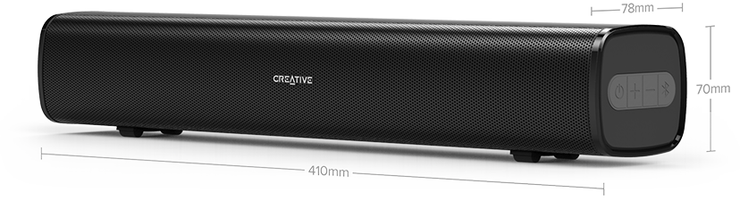 Built to fit under a flat panel monitor (410 x 78 x 70 mm), the low profile, stylish design of Creative Stage Air makes it a perfect fit for any style and setting. It is conveniently powered by USB, minimizing clutter on your desktop and allowing for more valuable desk space while delivering great audio.