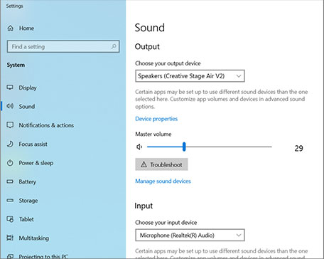 If you have multiple audio devices connected to your PC, you can also manually select Creative Stage Air V2 as the default output speaker in the ‘Sound' setting.