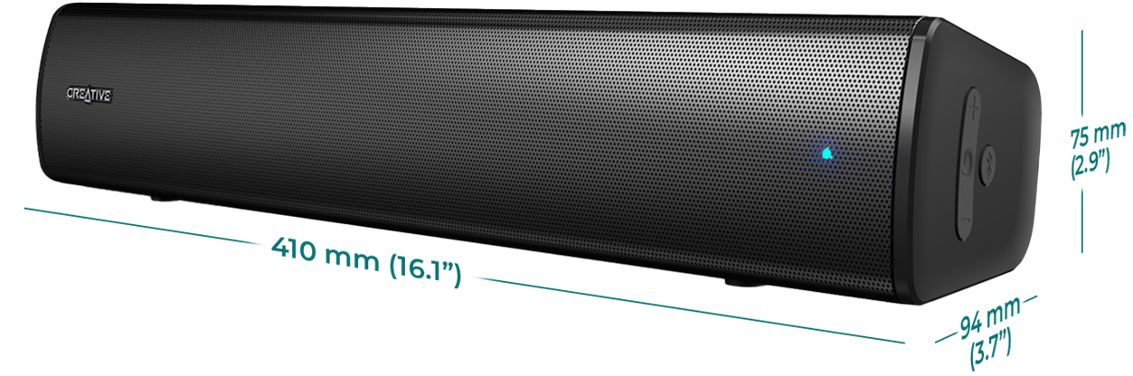 With the Creative Stage Air V2, you won't have trouble placing it anywhere, even on your desktop! Measuring at just 410 x 94 x 75 mm / 16.1 x 3.7 x 2.9 inches, the soundbar is compact enough to fit effortlessly under your monitor to minimize clutter.