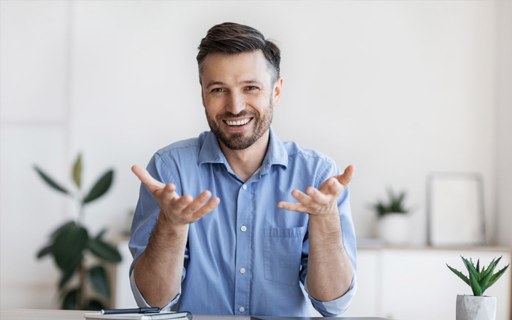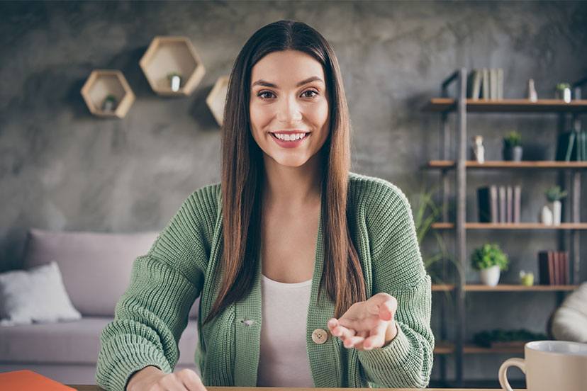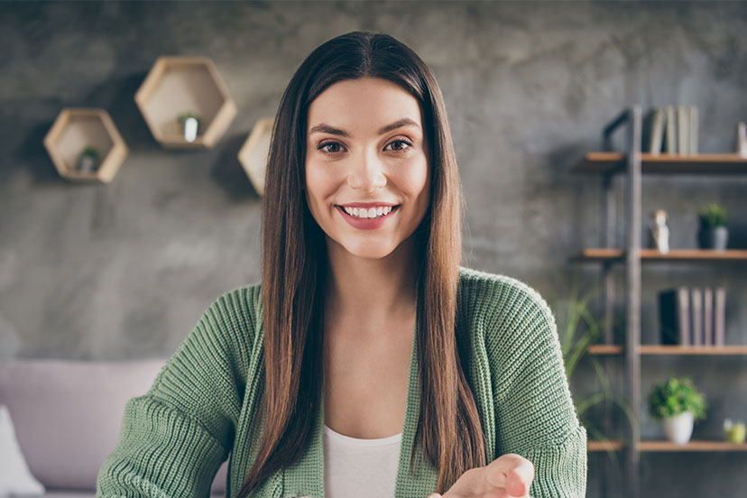 The ideal head-to-shoulders view, perfect for one-on-one conversations with optimal eye contact, like an online interview, and where the focus is on you.