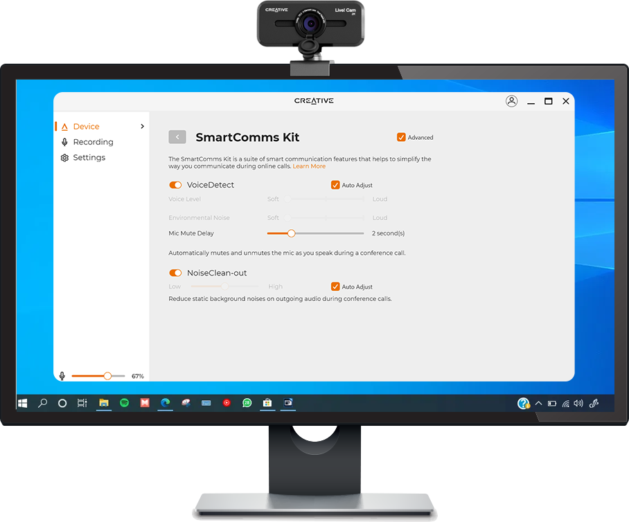 Skip the unnecessary microphone controls, focus on your online chats whether for work or play, and sound clear in them without the annoying background noise or being told to please go on mute. Our SmartComms Kit, available via Creative app, features a suite of smart communication features designed to help you speak and converse with ease.